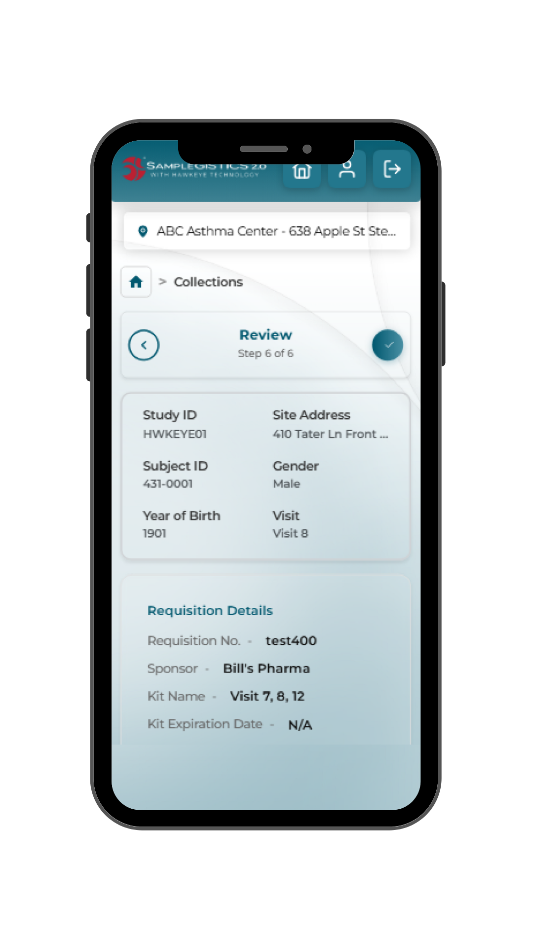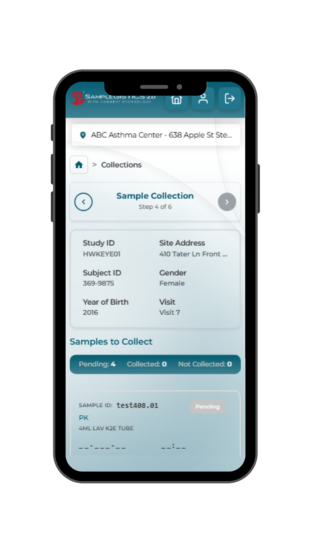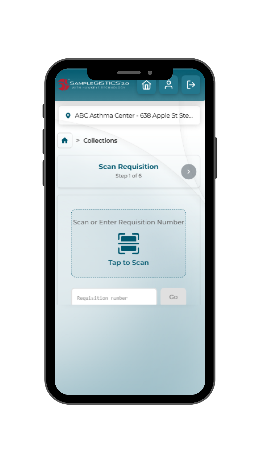 - Collection: Site staff complete requisitions and scan samples directly within the application, reducing manual entry and paperwork.